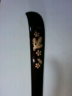 しかもこの茶杓、見てください。塗りも上品できれいだし、裏の小さな蒔絵も松と梅の花の絵でかわいいでしょ?一目ぼれで買いました。ちなみに以前のものの4倍のお値段。それならお手ごろ、と思います。