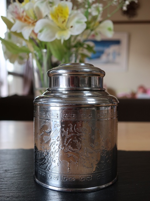 この銀色のオシャレな中国茶の缶は、たしか10年前の寒い時期、主人(まだ新婚)と関東旅行に行ったとき、横浜で買ったものです。