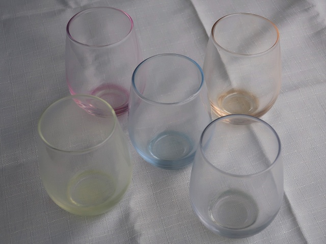 なぜかというと、グラスの底にそれぞれうっすら色が付けてあって、自分がどのカップだったか一目瞭然。