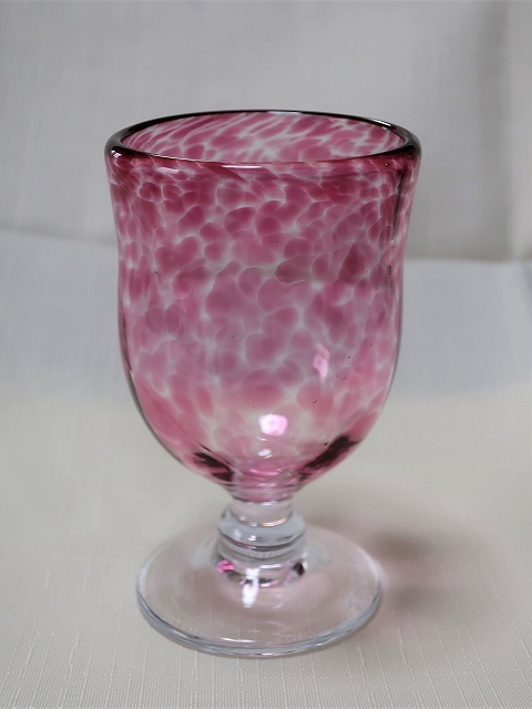 出来上がったグラスは、なかなか濃いピンクが良い色味を醸し出していて、素人の手作りらしい分厚さと歪みがこれまた良い味出してます。