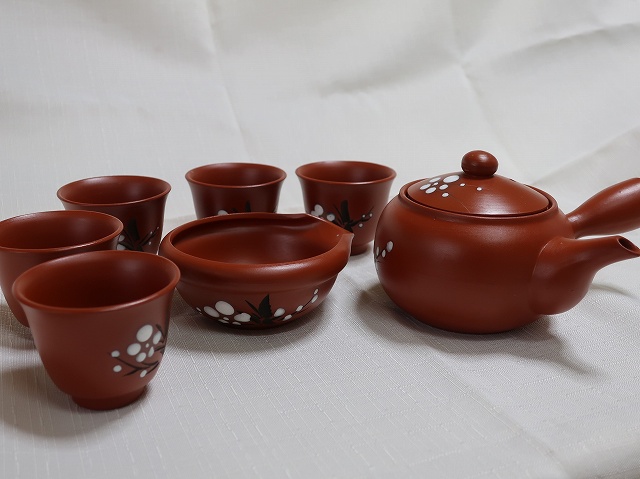近所のリサイクルショップで売っていた常滑焼の急須と湯冷まし、煎茶椀のご客セットです。