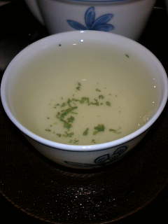 どんな風に出てくるのか楽しみにしてたら、予想以上に、茶道具一式出てきました。おおぅ、さすが京都はこうなんですか!?しかもスタッフが丁寧に淹れて下さいました。なかなかしっかり旨みも出てとろっとしてました。夏の夕暮れには涼やかでぴったり。量があったので三煎目まで美味しくいただきました。