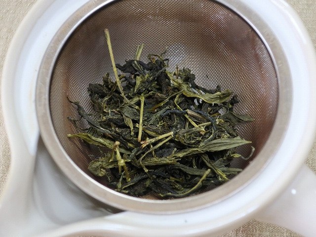 煎茶としてはなかなかインパクトある、茶葉一つ一つがかなり大きめサイズ。