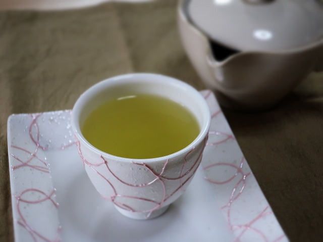 できあがったお茶は、見た目は煎茶らしい爽やかなグリーンで美味しそうです!