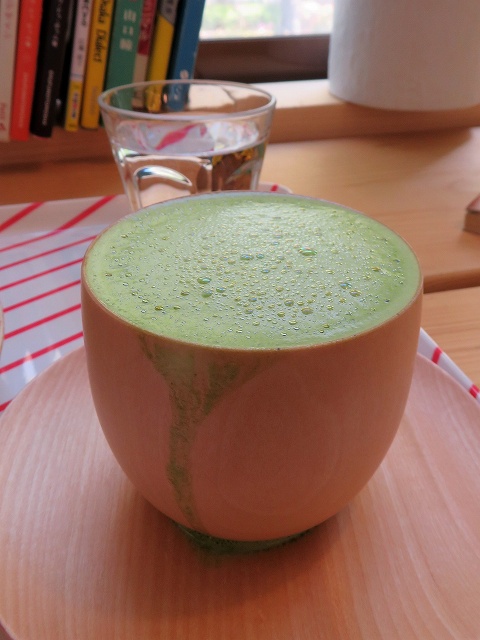 急ぎで写真を撮ったのでうまく撮れなかったけど、窓際の明るいカウンターにパステルグリーンの抹茶と薄い木のカップが映える映える。