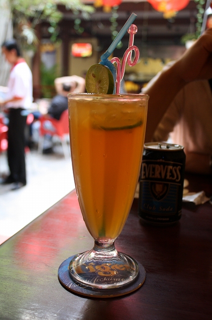 お昼前くらいに喉が渇いたので休憩に入ったお店。日本語のメニューが表に出ていて、かといって日本人の客はほとんどいない、魚がお良いでる小さな池があってオープンエアで中国風の提灯がかかっているのにテーブルと店員の制服はハンバーガーショップみたいな全く意味不明のお店。でも風が吹き抜けて気持ち良かったです。