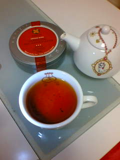 失礼してさし湯しました。(紅茶では好みに合わせて湯を足すこともマナー内だから問題なし。)で、やっと美味しくいただけました。
