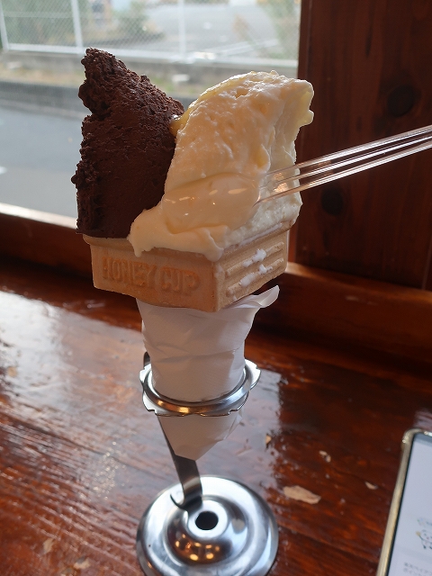 ダブル二つ購入して、娘二人で一つのコーン、私と主人で一つのコーンで食べました。