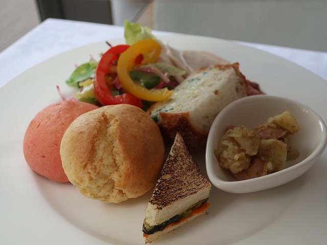 サンドイッチは二種、オードブルはローストビーフと鶏ハムとジャーマンポテトとサラダ、スコーンはプレーンと桜味でした。