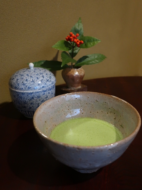 趣ある和風建築の建物で、席はちゃぶ台。昔ながら歪みのあるガラス越しに見える冬の少し寒々しい坪庭と赤い椿。室内には作家さんの京焼のお茶碗がいくつも飾られ(ギャラリーとしても使われている)、店主の暖かいおもてなしもとっても良かったです。