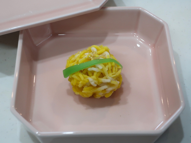 水仙を模した白と黄色のきんとんです。