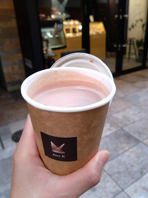 dari Kというお高いチョコレート専門店のお店の前に「ホットココア300円」の看板が立っていたので、かなりロープライスだなと驚いて、喉も乾いてたし飲んでみることにしました。