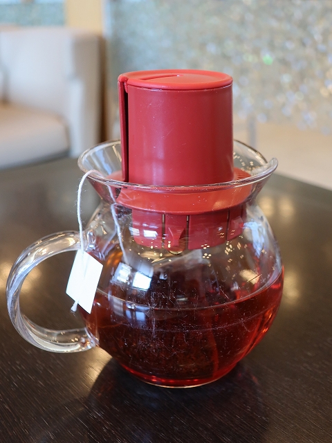 シリコン蓋が付いているガラス製ティーポットなんですが、このシリコン蓋、蒸らしが終わったらティーバッグの糸を引っ張って茶葉を引き上げておける優れもの!