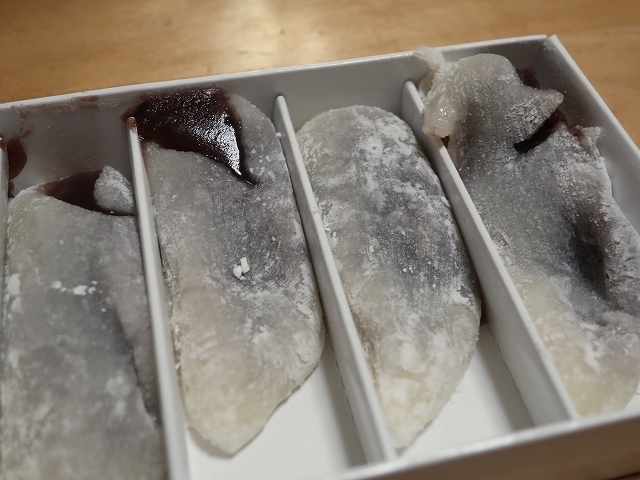 食べた感想はね。崩れてなかったらもう少し餅の食感をよりよく楽しめたのかなと思いますが、でも餡も柔らかくて美味しかったです。