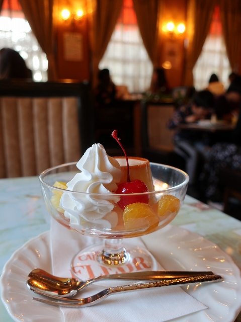 カフェメニューにはもちろん、パフェとプリン(アラモード仕立て)、ありますよ。
