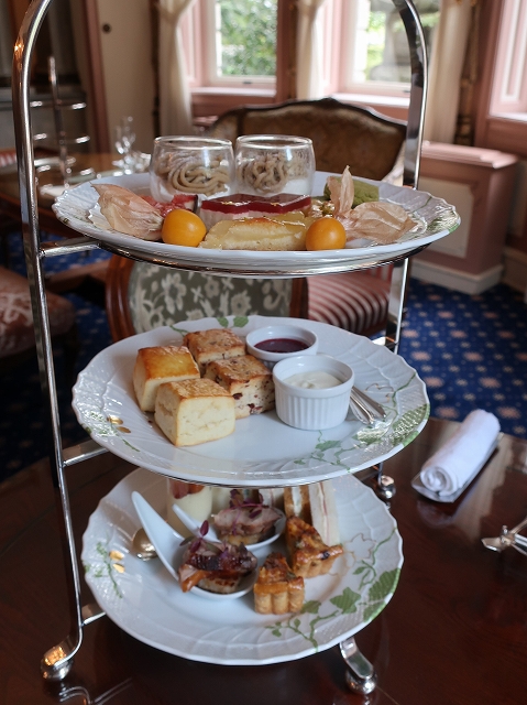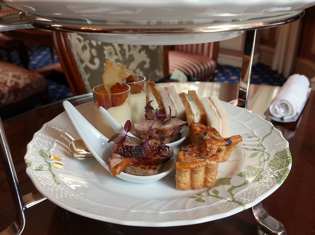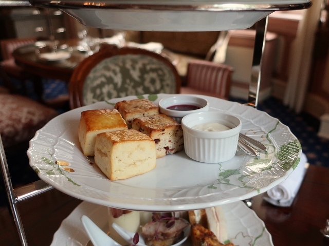 セイボリーはお肉もあり、けっこうなボリュームとバラエティで、ちょうどお昼時にぴったりだったし、スコーンはクリームとジャムがたっぷりあり、紅茶とおいしくいただけました。