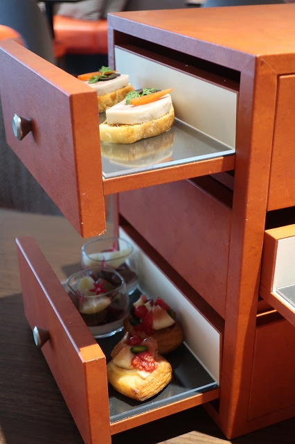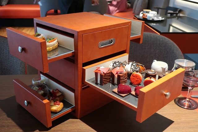 スタッフの方が大事そうに抱えてきたのが、このヒルトン大阪アフタヌーンティー名物、ジュエリーボックス風のティースタンド!!