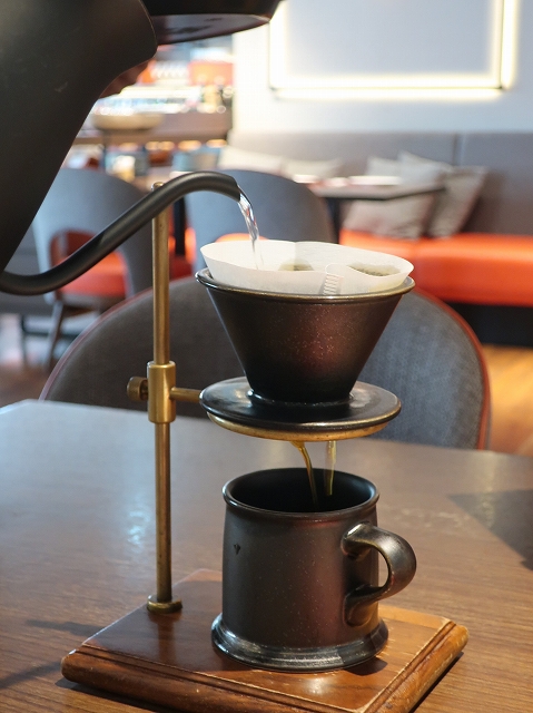 スタッフさんがドリップ器具一式持ってきて、なんと目の前で淹れてくれます。